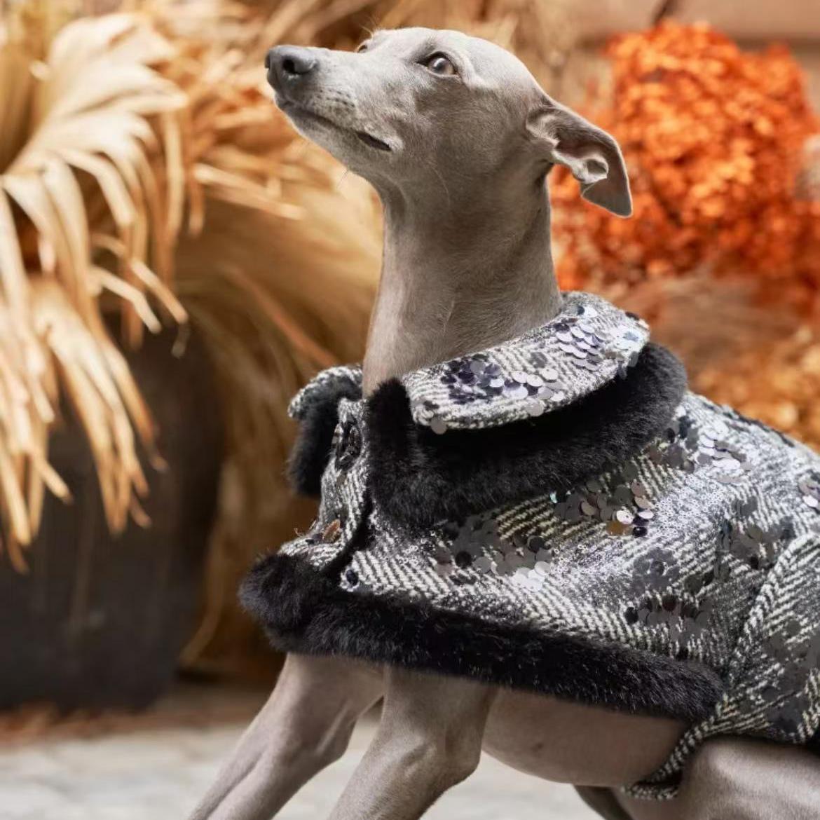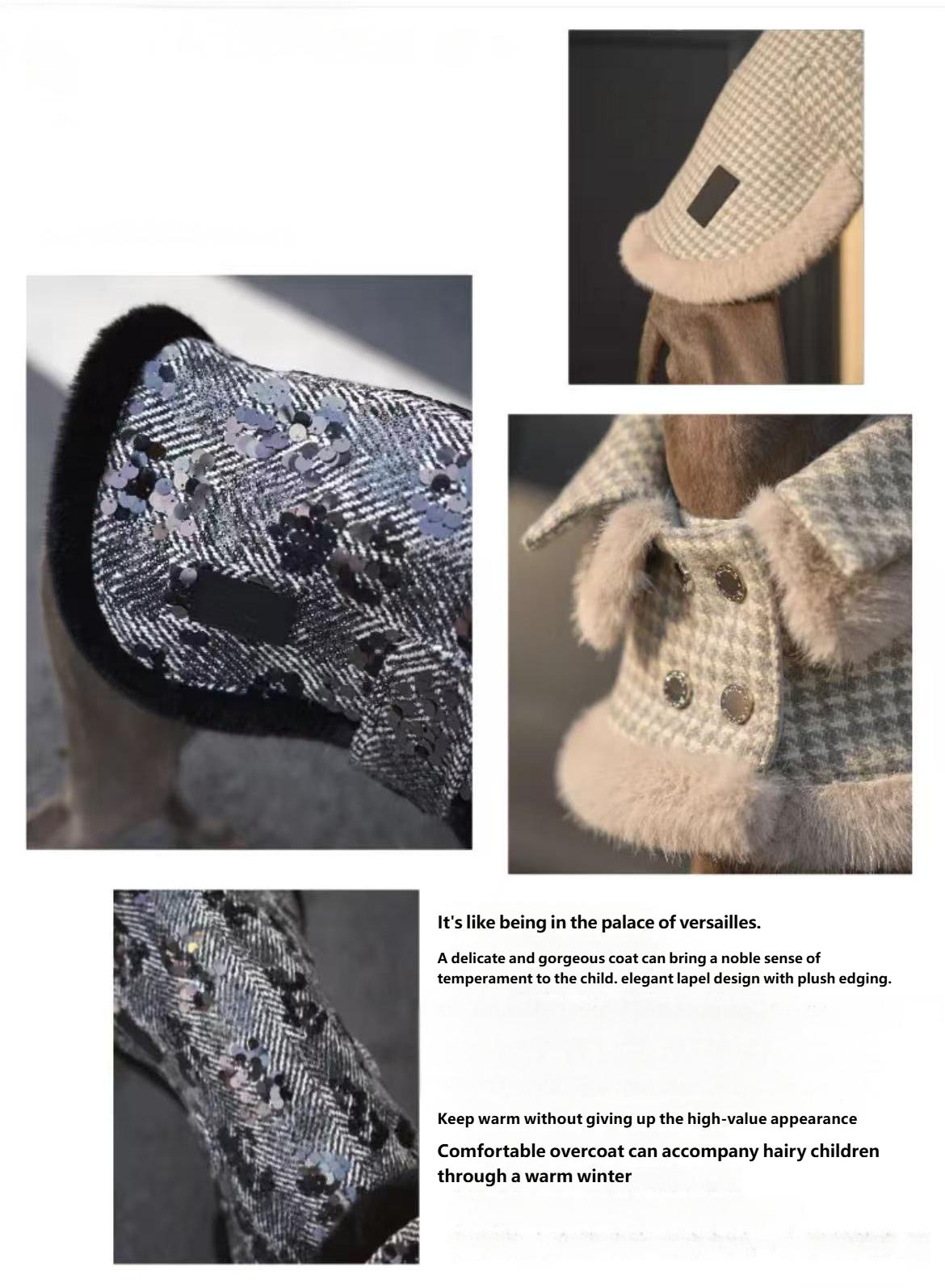 Introducing the Monocle Houndstooth Sequin Dog Coat — Monocle Black — a couture winter layer that blends Paris-inspired houndstooth with hand-sewn sequins and a plush faux-mink collar. Built warm yet easy to wear, it turns everyday walks, fêtes, and café stops into a small runway moment for you and your dog.